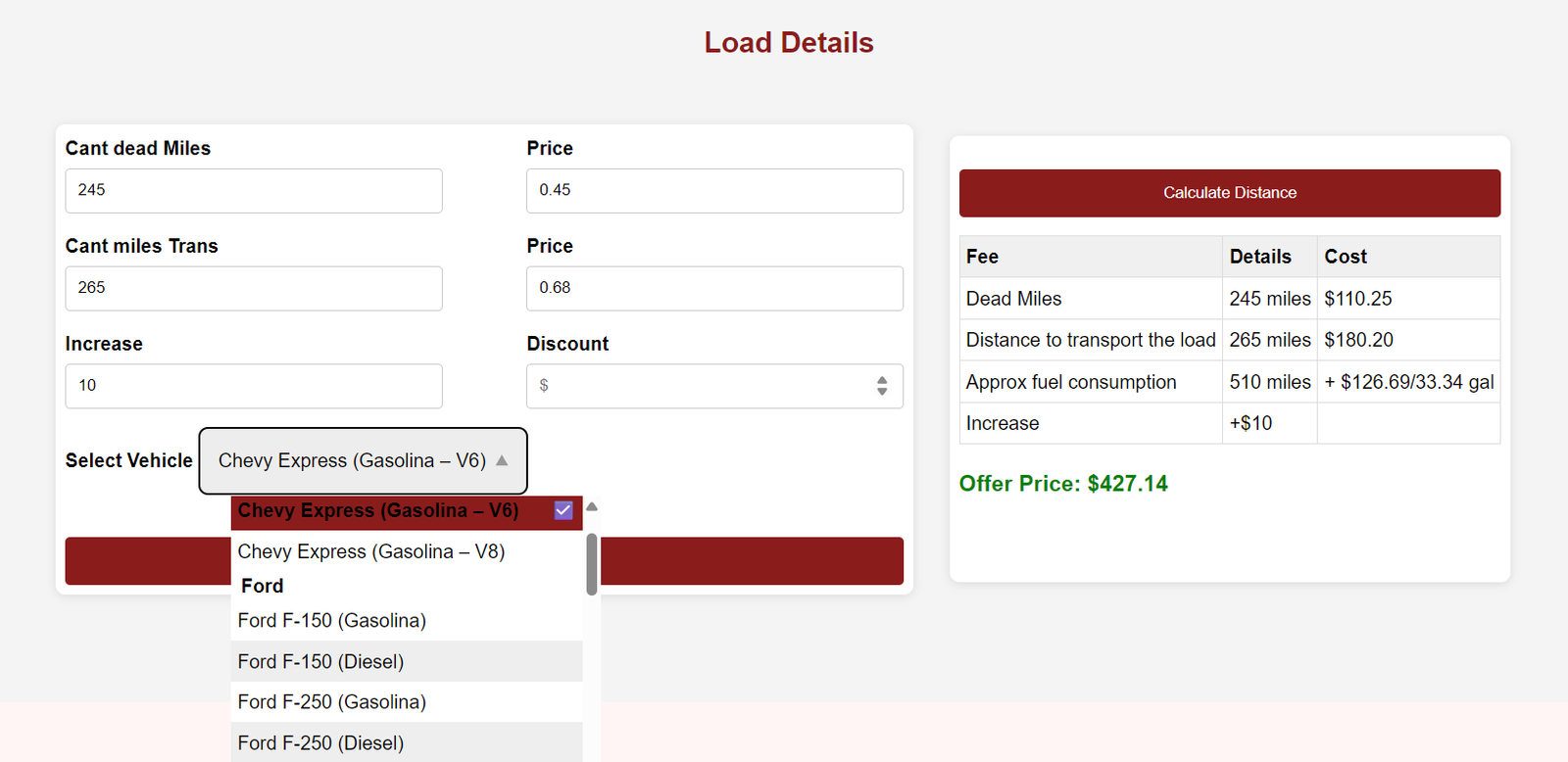Explore our calculation application. It’s a tool for managing the rate based on the distance traveled by the driver across different locations